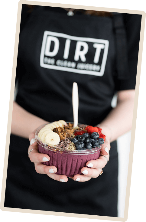 Started by two faith filled holistic nutritionists who believe that real food – God’s food – has the power to heal, energize and transform. DIRT was built on a mission to serve up more than just juice. They wanted to create a space where clean, ORGANIC ingredients meet spirit-filled purpose. With a whole lot of prayer, passion and plants, dirt became a place where people can fuel their bodies, feel seen and be a part of something life – giving.